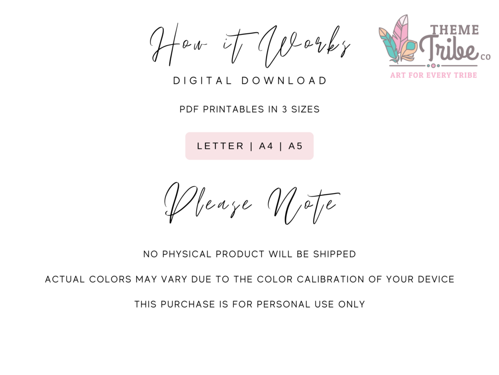 You will receive A4, A5, Letter sizes PDF's ready to print